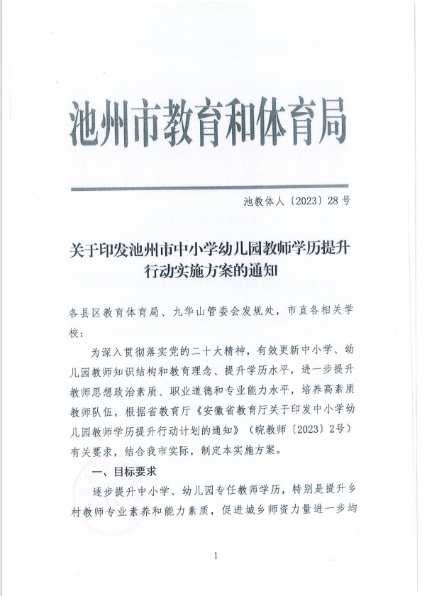 關(guān)于轉(zhuǎn)發(fā)池州市中小學(xué)幼兒園教師學(xué)歷提升行動(dòng)實(shí)施方案的通知