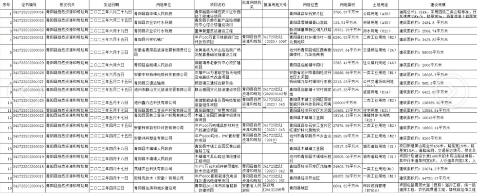 青陽縣自然資源和規(guī)劃局2023年第二季度建設(shè)用地規(guī)劃許可證核發(fā)一覽
