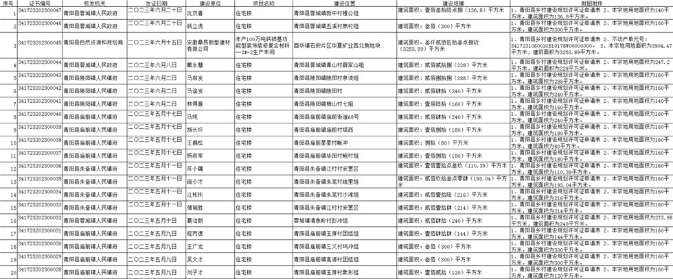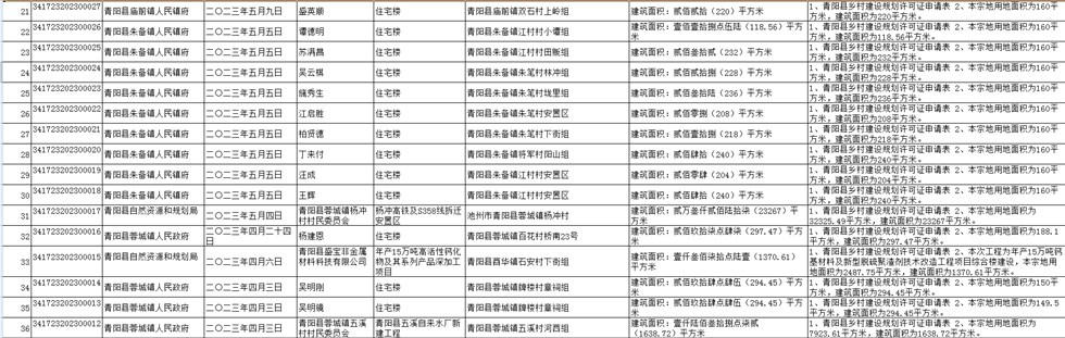 青陽縣自然資源和規劃局2023年第二季度鄉村規劃許可證核發一覽