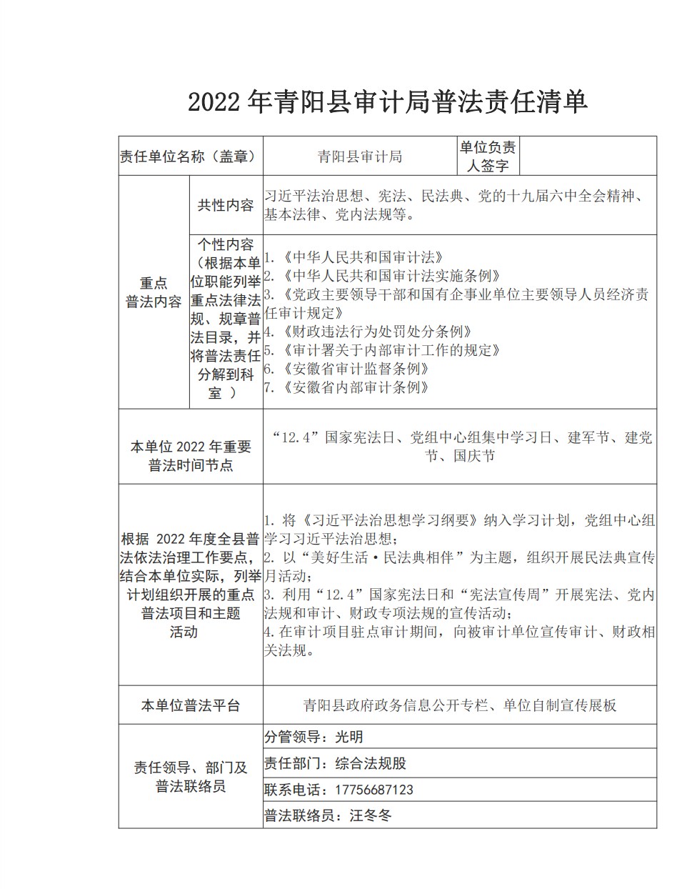 2022年青陽縣審計(jì)局普法責(zé)任清單