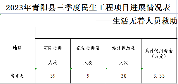 名稱: 青陽縣2023年第三季度生活無著人員社會救助情況公示 文號: