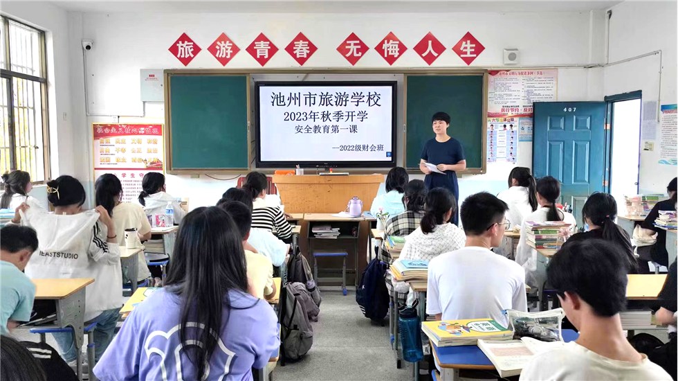 為扎實做好法治教育宣傳工作,切實提高師生安全防范意識,2023年秋季學期伊始,池州市旅游學校認真上好“開學第一課”,以實際行動維護校園安全。
