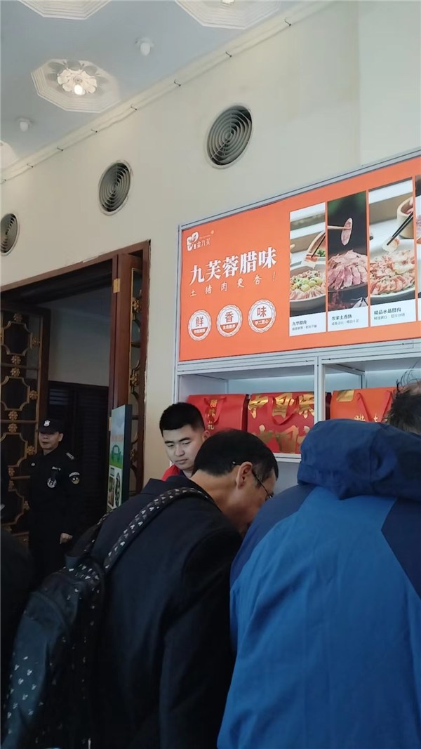 本次農交會于11日起對市民開放,青陽縣九芙蓉臘味的展位前人頭攢動,選用九華山當地農戶散養皖南黑豬古法腌制的臘味深受上海市民喜愛。