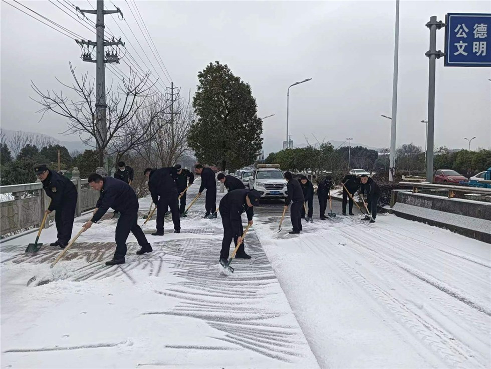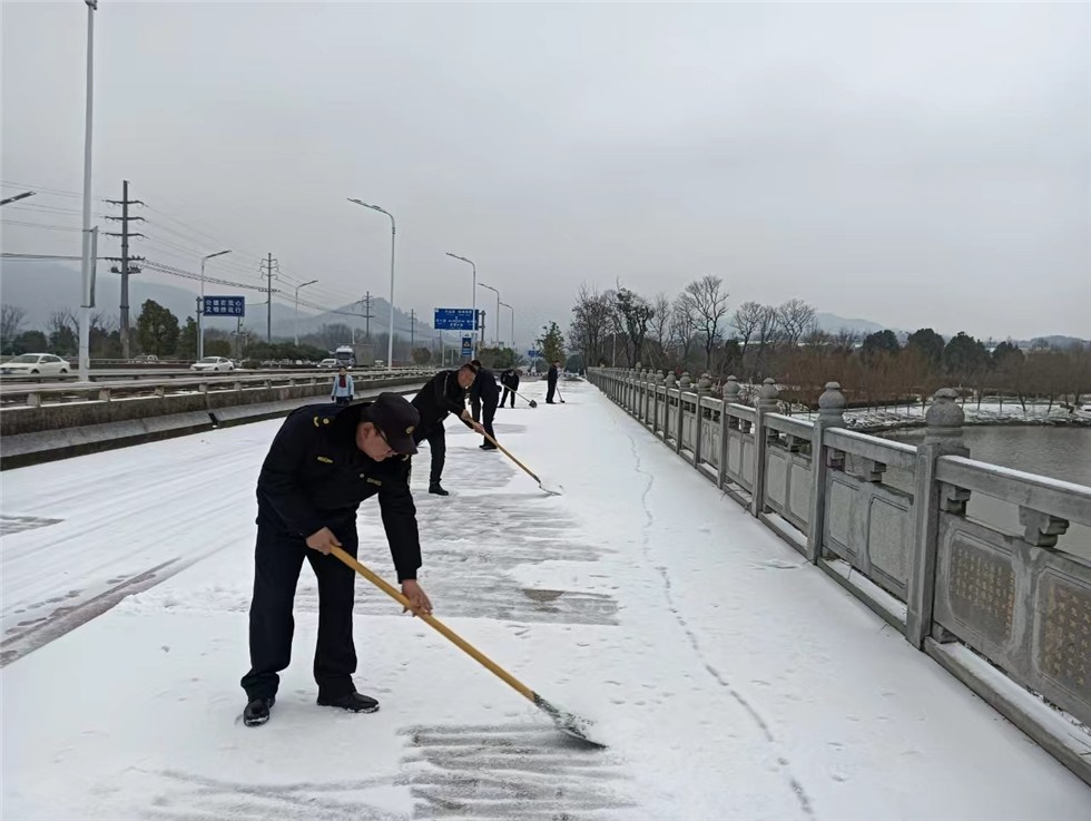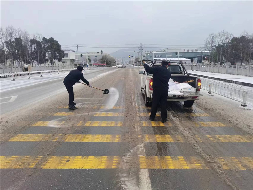 二是聞令而動,打好“攻堅戰(zhàn)”。采取“人工清雪為主,撒融雪劑為輔”“先橋梁、后道路”的清雪方式,迅速對縣城區(qū)主次干道、人行道及橋梁積雪進(jìn)行清掃。截至目前,青陽縣城管執(zhí)法局累計出動執(zhí)法人員100余人次、執(zhí)法車輛7車次,清理(除)平崗路、青山路、芙蓉大道等路段及南門橋、高陽橋、九子橋等橋梁積雪,使用鐵鍬60把,拋撒工業(yè)鹽59包,消除(處理)安全隱患26處,以確保道路安全暢通,努力用最短時間恢復(fù)城市整潔面貌。