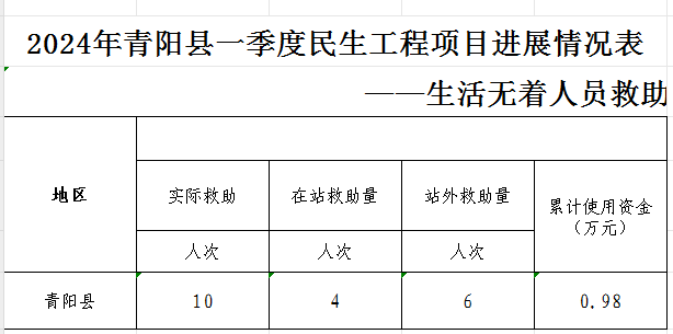 青陽縣2024年第一季度生活無著人員社會救助情況公示