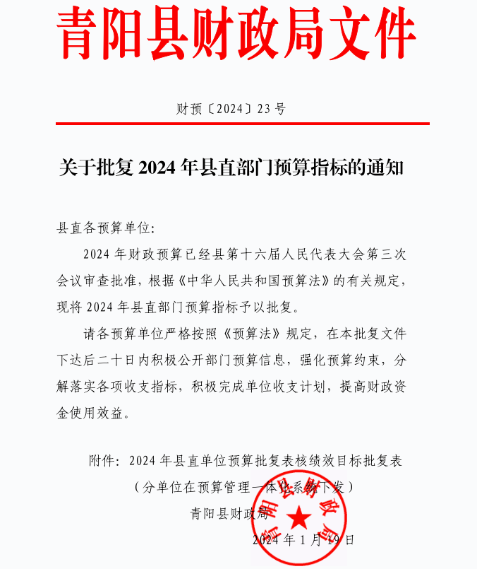 青陽縣民政局2024年預(yù)算指標(biāo)批復(fù)公示