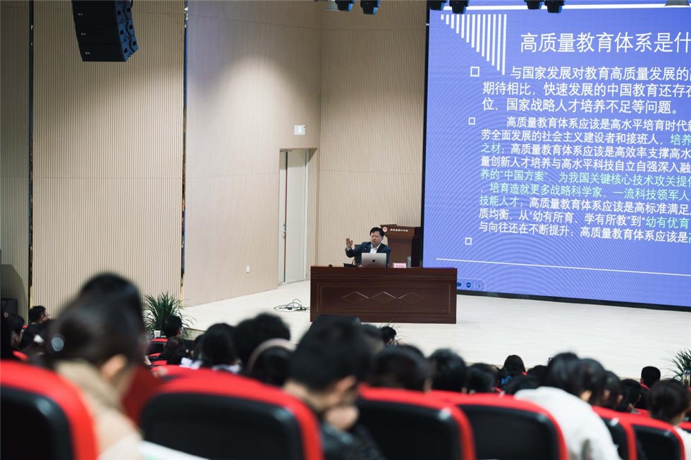 首期“名師講堂”為期一天。上午,教育部中小學校長、教師“國培計劃”培訓專家、江蘇省中小學教師培訓學會常務副會長兼秘書長嚴華銀教授,圍繞加快建設高質量教育體系,促進學校內涵式發展作了首場報告。下午,教育部國培計劃心理健康教育項目首席專家、安徽師范大學心理咨詢研究所所長方雙虎教授聚焦學生心理健康作了《新時代學校心理健康教育的理念與路徑》的輔導報告。