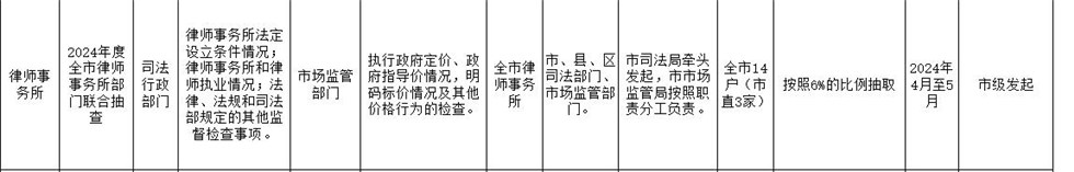 名稱: 青陽縣司法局2024年度“雙隨機、一公開”抽查工作計劃 文號:
