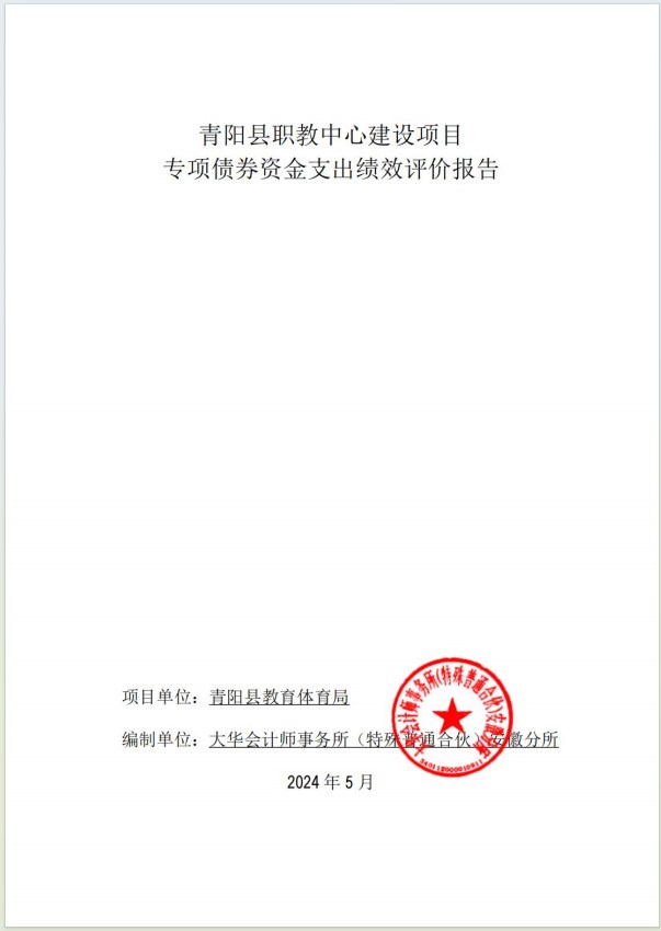 名稱: 青陽縣職教中心建設項目績效評價報告2023年度 文號: