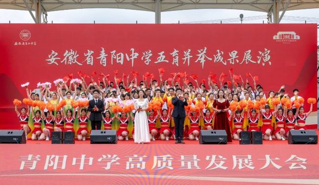 會上,與會人員共同觀看了青陽中學五育并舉成果展演,舞臺劇《時光·百年》、青陽腔劇目《百花贈劍》、歌舞劇《青春印跡》、花球拉拉操《奔跑的青春》、黃梅戲聯唱等精彩節目相繼上演,以歌舞贊美盛世青春,用非遺戲曲彰顯文化傳承,充分展現青陽教育與時代脈搏同頻、與祖國風雨同行的昂揚主旋律。