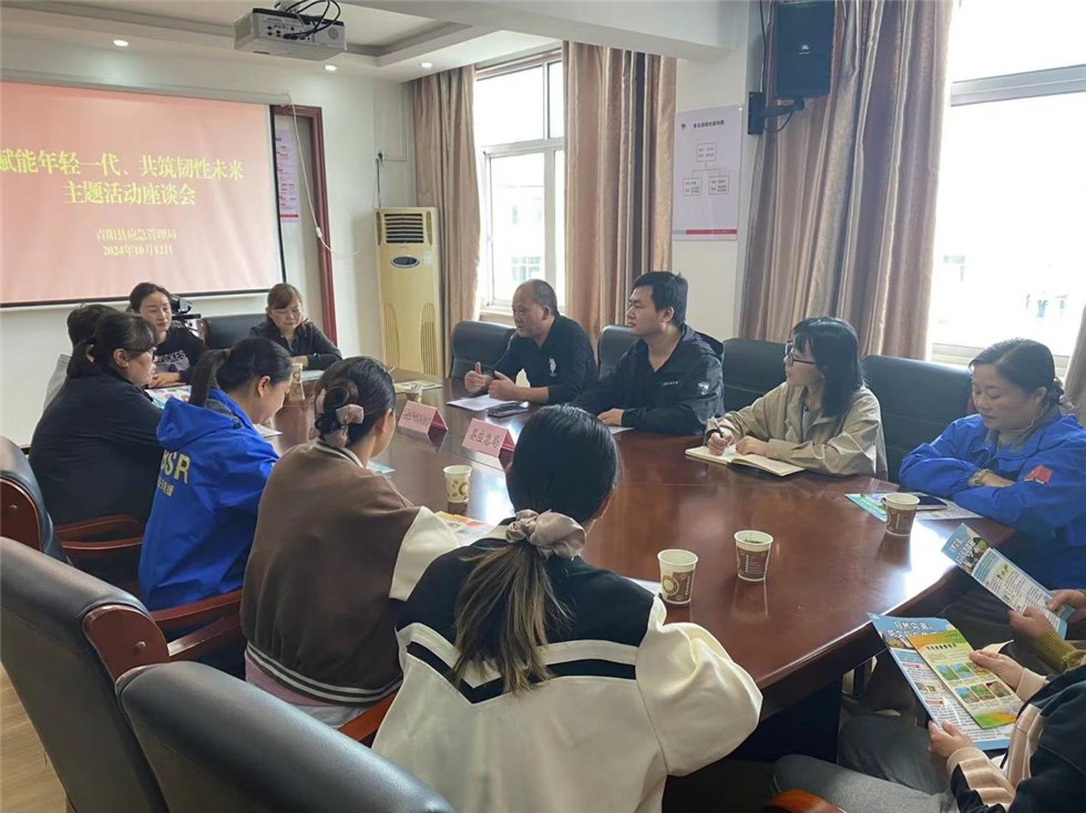隨后召開座談交流會,綜合減災救災和物資保障股負責人趙德成同志向代表們介紹了我局機構設置、2024年國際減災日宣傳、近年來防災減災救災工作開展情況等,圍繞“賦能年輕一代、共筑韌性未來”主題,與代表們就兒童和青少年掌握防災減災救災知識技能、提升全社會抵御自然災害綜合防范能力等進行了討論交流。