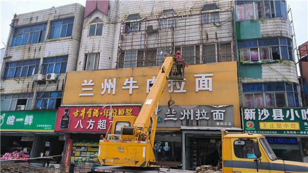 青陽縣城管局集中拆除遮擋消防逃生通道廣告牌