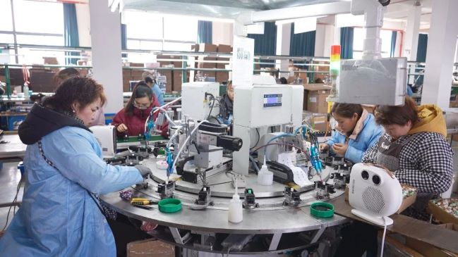 與此同時,位于丁橋鎮童車產業園內的池州市方西玩具科技有限公司同樣不甘落后,車間內工人們爭分奪秒趕制訂單。生產線上,一件件零散的童車部件在工人們熟練地操作下組裝成一輛輛精美的童車。據該公司總經理周祥介紹,作為一家電動童車制造銷售企業,公司90%的產品銷往美國。目前,2025年全年的訂單已基本排滿,三條生產線正在滿負荷生產,今年產值有望突破一個億。人勤春來早,奮進正當時。青陽經濟開發區內的各家企業也陸續恢復生產。在池州賽唯特電子科技有限公司,工人們在各條生產線上加緊趕制訂單。近年來,這家揚聲器領域的專精特新企業聚焦生產設備智能化改造,統籌國內外銷售市場,產銷形勢不斷向好。“今天我們第一天上班,員工復工率大概在70%—80%,目前正在趕制2024年底積壓的訂單,今年我們計劃將再增加8條生產線,其中4條是自動線,預計產值能突破2億元。”池州賽唯特電子科技有限公司生產經理趙來同說。