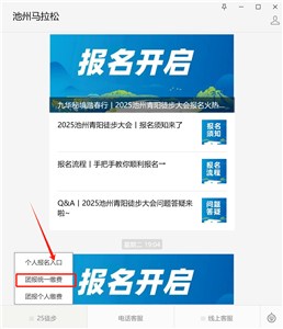 關注《池州馬拉松》官方微信公眾號,點擊下端“徒步大會”—“團報鏈接”進行報名,報名年齡和身體條件、領物時間、參與活動等具體要求,請參閱附件。