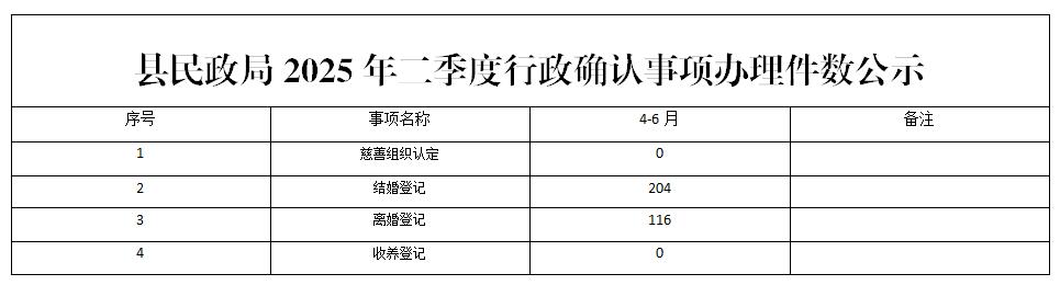 縣民政局2025年二季度行政確認事項辦理件數公示