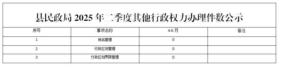 名稱: 縣民政局2025年二季度其他行政權力辦理件數公示 文號: