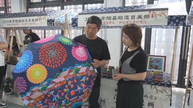 匠心傳承,才聚非遺。在傳統(tǒng)手工藝展區(qū),青陽(yáng)農(nóng)民畫、廟前儺戲面具雕刻、梅溪泥塑等我縣非遺代表性項(xiàng)目紛紛亮相,群眾在集市里體驗(yàn)非遺魅力,更感受到了非遺傳承的實(shí)踐活力?!鞍艳r(nóng)民畫印在杯墊和傘面上,挺有特色的,又好看又比較實(shí)用,感覺非遺就在我們身邊。”游客陳歡告訴記者。