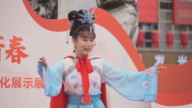 活動(dòng)現(xiàn)場(chǎng)不僅展示了豐富多彩的非遺項(xiàng)目,還開展了精彩紛呈的非遺展演,由我縣文藝工作者新編排的青陽(yáng)腔劇目《王昭君》、青陽(yáng)腔戲歌《青陽(yáng)之夜》輪番上演。古腔傳新聲,青年演員的傳承和創(chuàng)新,讓國(guó)家級(jí)非遺——青陽(yáng)腔在新時(shí)代舞臺(tái)上展現(xiàn)出新風(fēng)采。非遺青陽(yáng)腔演員張欣悅:“通過(guò)常態(tài)化演出,讓青陽(yáng)腔這一國(guó)家級(jí)非遺真正走進(jìn)群眾,豐富大家精神文化生活?!?
