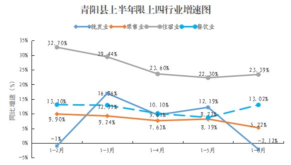 上半年,全縣社會消費品零售總額實現45.18億元,同比增長4.8%,高于全市平均增速0.8個百分點,增速居三縣一區第2位。其中:限額以上單位社會消費品零售額為5.23億元,同比增長7.4%,高于全市平均增速6.8個百分點,增速居三縣一區第2位。