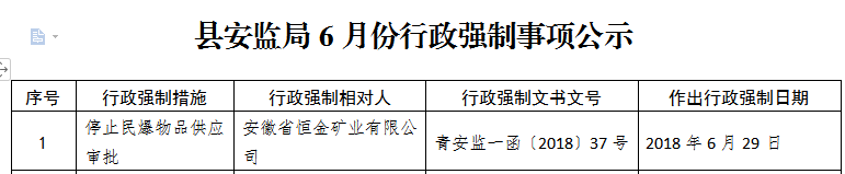 名稱: 縣安監局6月份行政強制事項公示 文號: