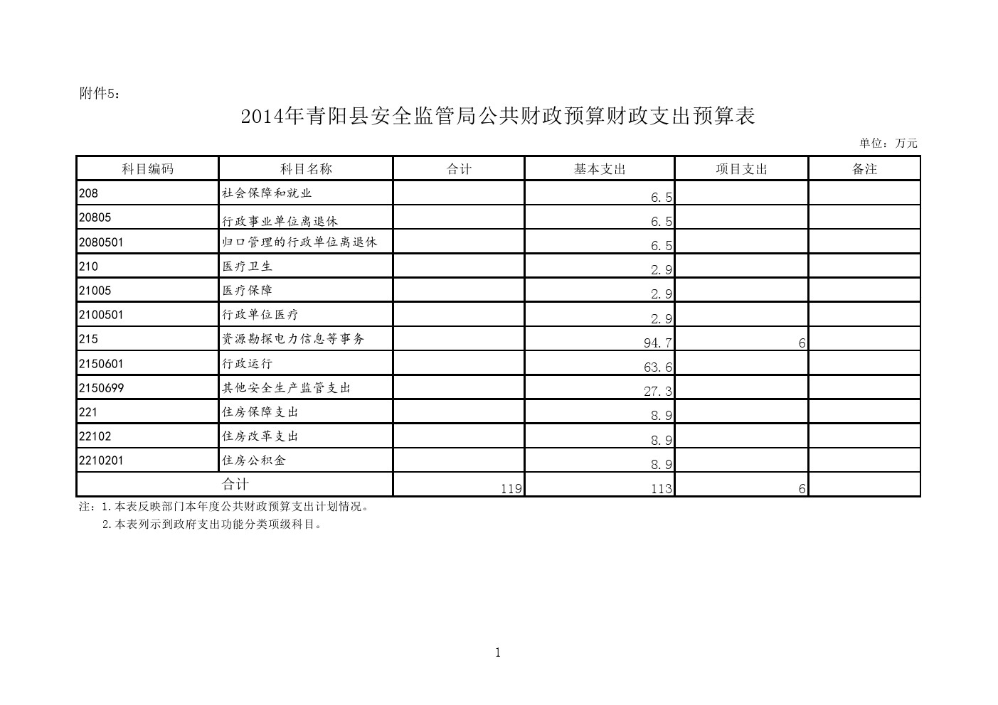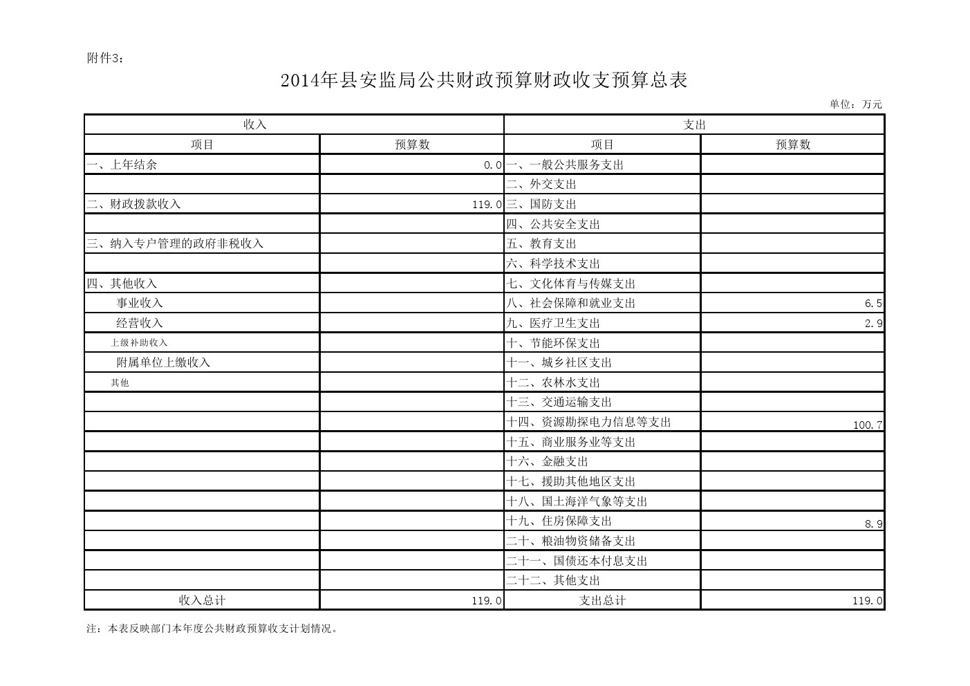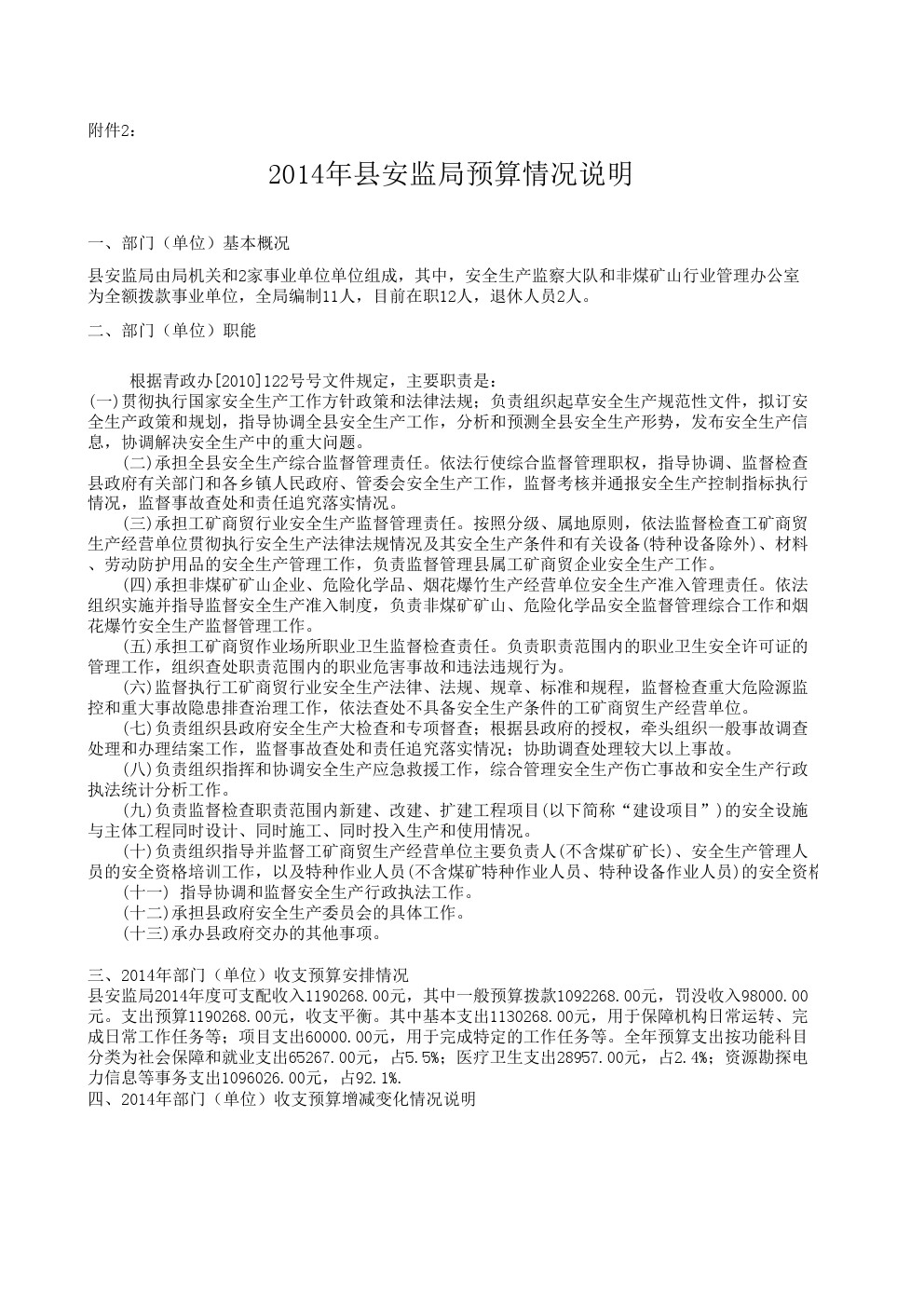 名稱: 縣安監局2014年財政預算情況說明 文號: