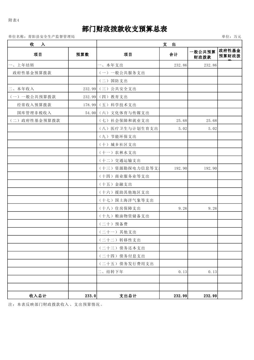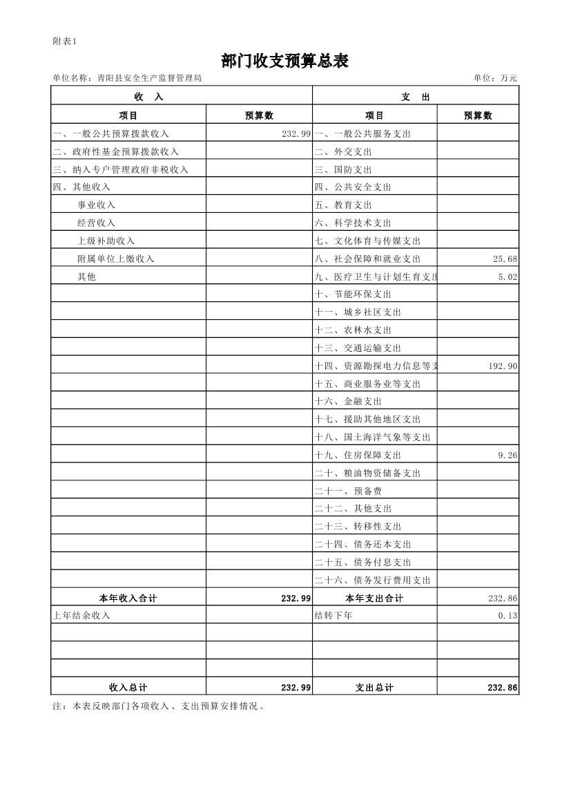 縣安全監管局2017年度可支配收入232.99萬元,其中:財政撥款安排178.99萬元,納入專戶管理的政府非稅收入54.00萬元。支出預算232.86萬元,其中基本支出143.86萬元,用于保障機構日常運轉、完成日常工作任務;項目支出89萬元,用于完成安全生產信息系統項目建設、安全生產宣傳、安全生產專項整治等工作任務。