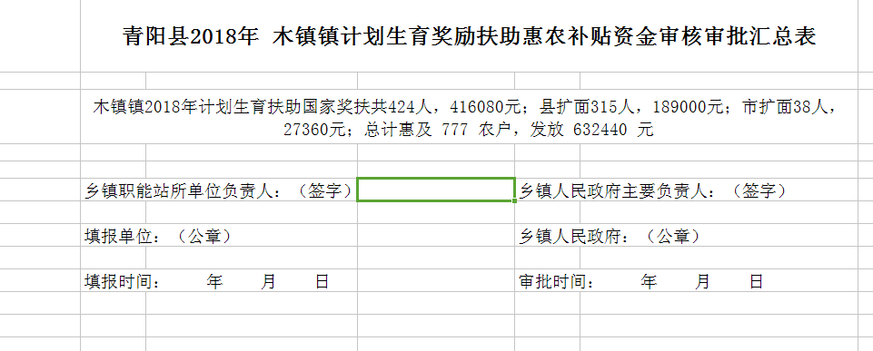名稱: 2018年木鎮鎮計劃生育獎勵扶助惠農補貼資金審核審批匯總表 文號: