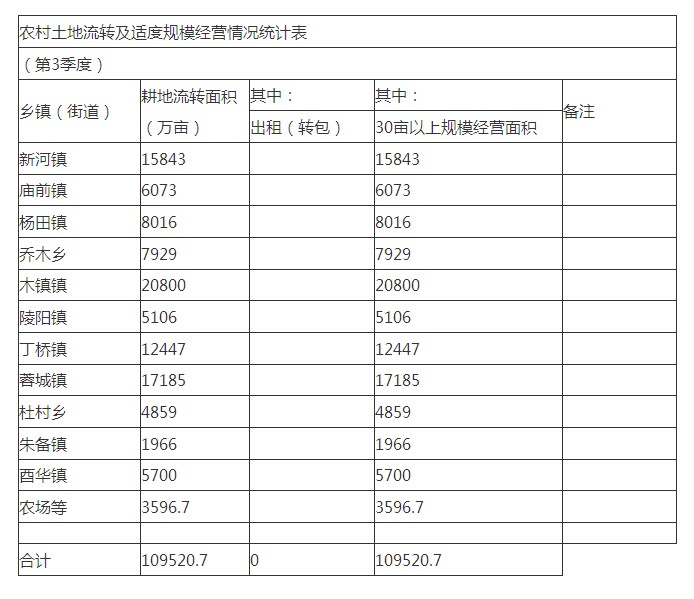2019年第三季度農(nóng)村土地流轉(zhuǎn)及適度規(guī)模經(jīng)營情況統(tǒng)計表