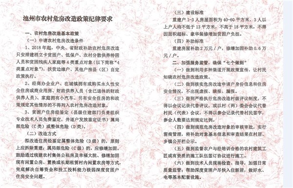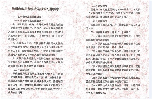 【政策紀律要求】池州市農村危房改造政策紀律要求