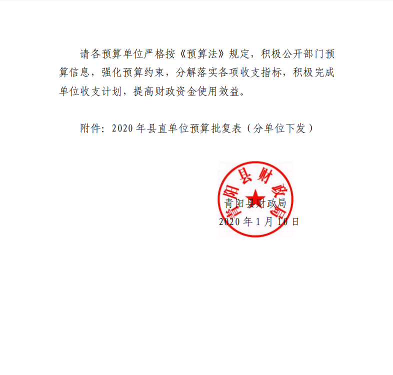 名稱: 青陽縣民政局2020年預算指標批復公示 文號: