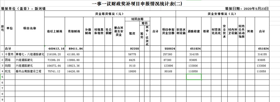 名稱: 2020年村級公益事業建設一事一議財政獎獎項目申報表匯總 文號: