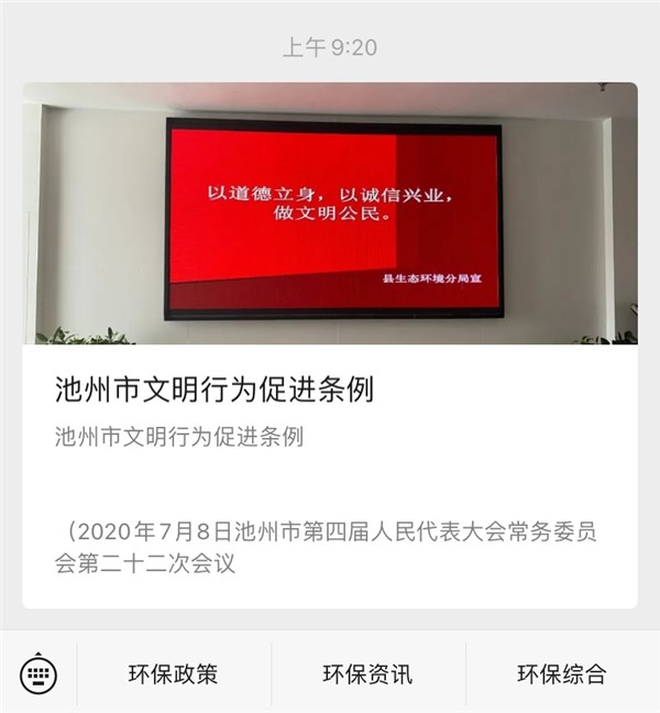 利用LED電子屏幕滾動播放公民道德宣傳標語通過微信公眾號轉發關于《池州市文明行為促進條例》的宣傳內容充分開展宣傳活動,引導廣大干部職工學習、樹立公民道德意識。
