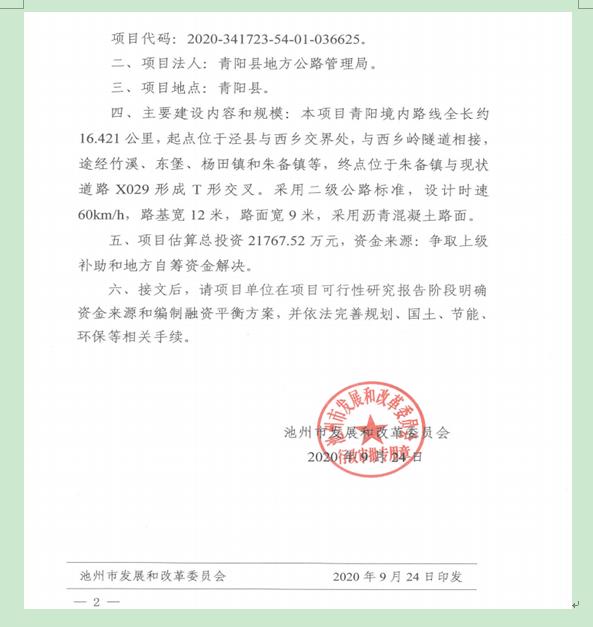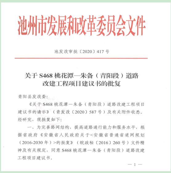 名稱: 【S468】關于S468桃花潭至朱(青陽段)備道路改建工程項目建議書的批復 文號: