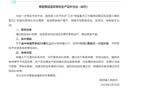 年初,主動謀劃出臺了《陵陽鎮雙季稻種植獎補辦法》,鼓勵農戶種植雙季稻,增加糧食產量,建立了140畝的雙季稻示范片,形成了有效的帶動效益;積極與各農資點對接,確保種子、化肥、農藥等農資供應保障,鎮農技站技術員適時發布病蟲害防治和氣象信息,加強對種植大戶的常態化上門技術指導,全年上門指導750人次 ;針對農戶普遍反映的野豬危害農作物的問題,鎮政府積極與縣林業局對接,在鄉鎮中第一個開展了依法狩獵野豬工作,有效回應了農戶實際訴求;2020年度,全鎮稻谷產量達1.6萬噸,較往年有所增加,糧食產購銷各環節運行通暢,全鎮糧食安全有力保障。