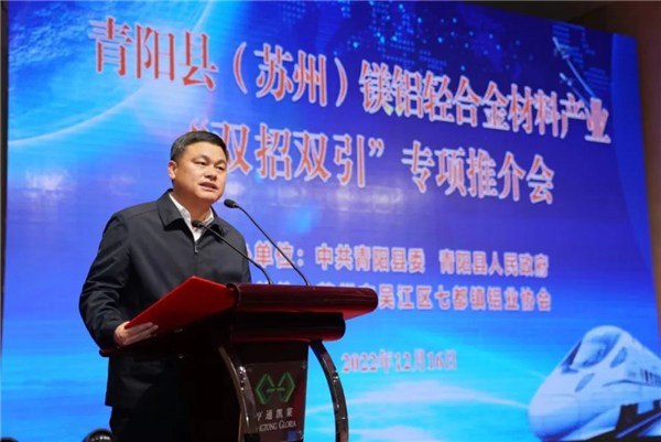 推介會上,與會人員共同觀看了青陽縣招商宣傳片,青陽縣投資促進局就青陽招商平臺及鎂鋁輕合金產業進行了專題推介,蘇州市吳江區七都鎮鋁業協會副會長、池州市京工建新材料科技有限公司董事長施林榮就鎂鋁輕合金產業發展現狀作了發言。