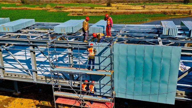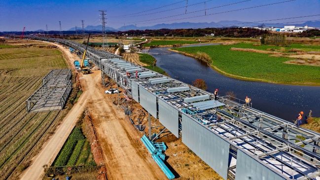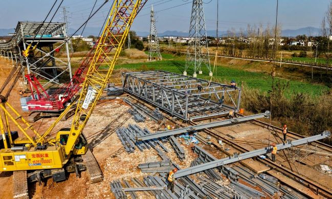 近日,安徽寶鎂輕合金有限公司礦產品輸送廊道工程在晴好天氣的助力下,施工單位正全力以赴,趕工期、搶進度,保質保量保生產。目前,廊道鋼結構吊裝已經進入了最后收尾階段。