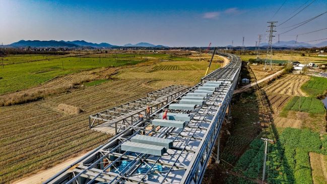 據了解,安徽寶鎂輕合金有限公司礦產品輸送廊道工程起點位于酉華鎮花園吳家白云巖礦區,終點位于童埠物流園區,線路總長約22.97km,由封閉式桁架通廊和隧道段組成,包含4條山體隧道,設計年運輸能力4000萬噸。今年9月5日,隨著3號隧道正式貫通,所有隧道實現貫通,標志著廊道項目進入全面攻堅階段。