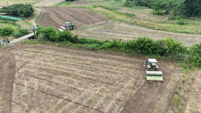 眼下正值夏收夏種關鍵時節,在青陽縣酉華鎮田屋村,青陽縣福林農業開發有限公司負責人、90后新農人王建凱正帶領著工人們在田間進行旱稻種肥同播作業。
