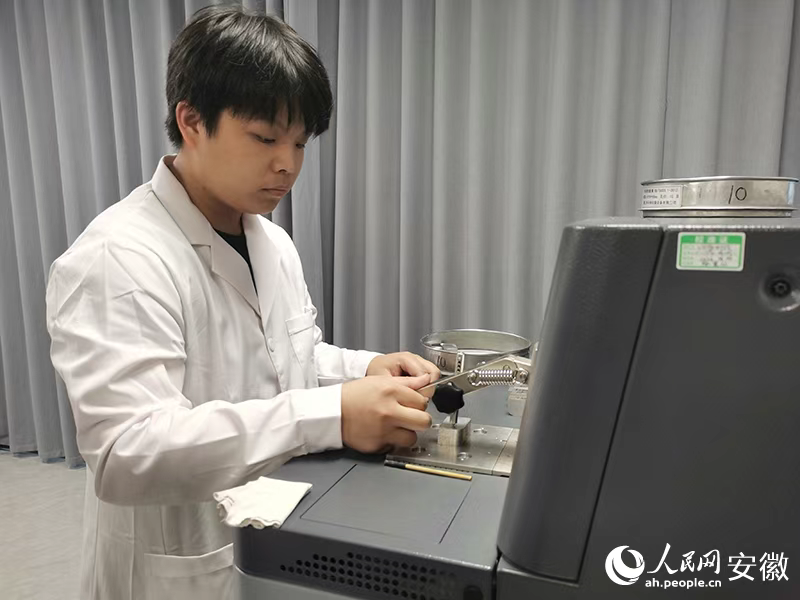 實驗員對鎂塊進行檢測。人民網記者 胡雨松攝