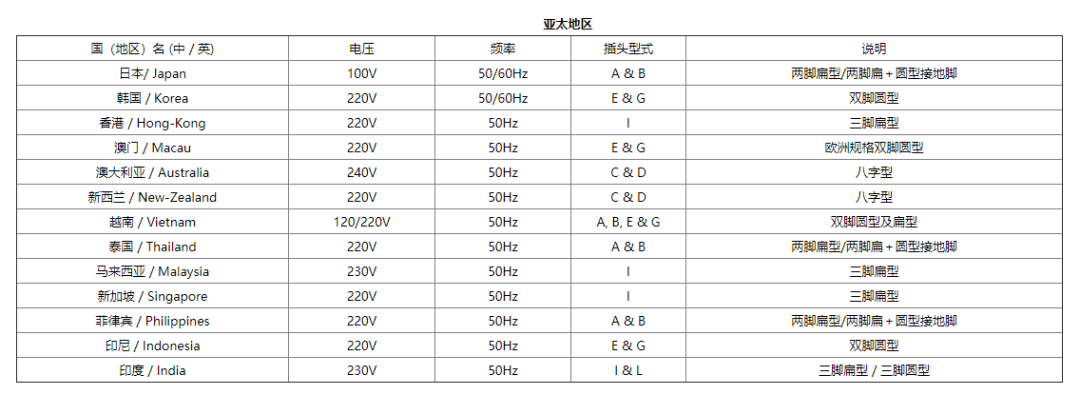 電源適配器電壓和插頭全球每個國家都有哪些不同呢?