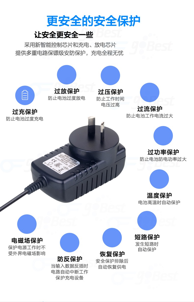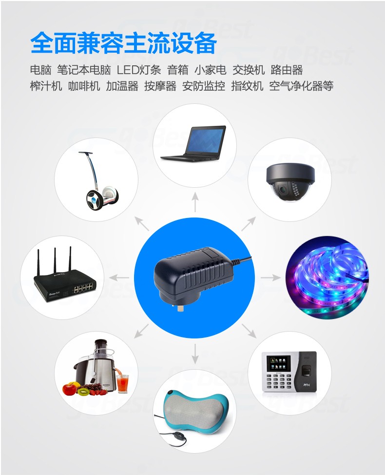 • 采用前沿IC控制方案和先進的制造工藝,高精度,低噪音;過壓,過流,過充,短路等多重保護。