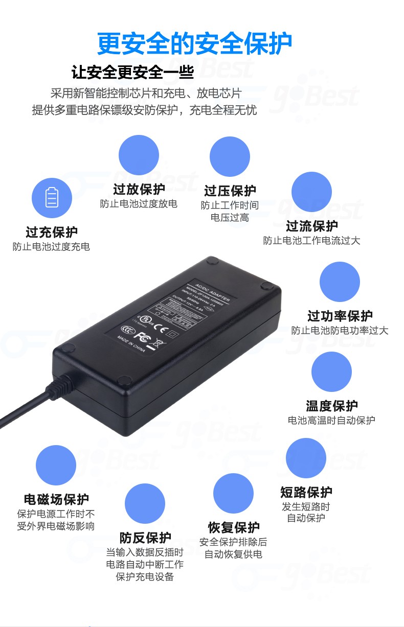 • 采用前沿IC控制方案和先進(jìn)的制造工藝,高精度,低噪音;過(guò)壓,過(guò)流,過(guò)充,短路等多重保護(hù)。