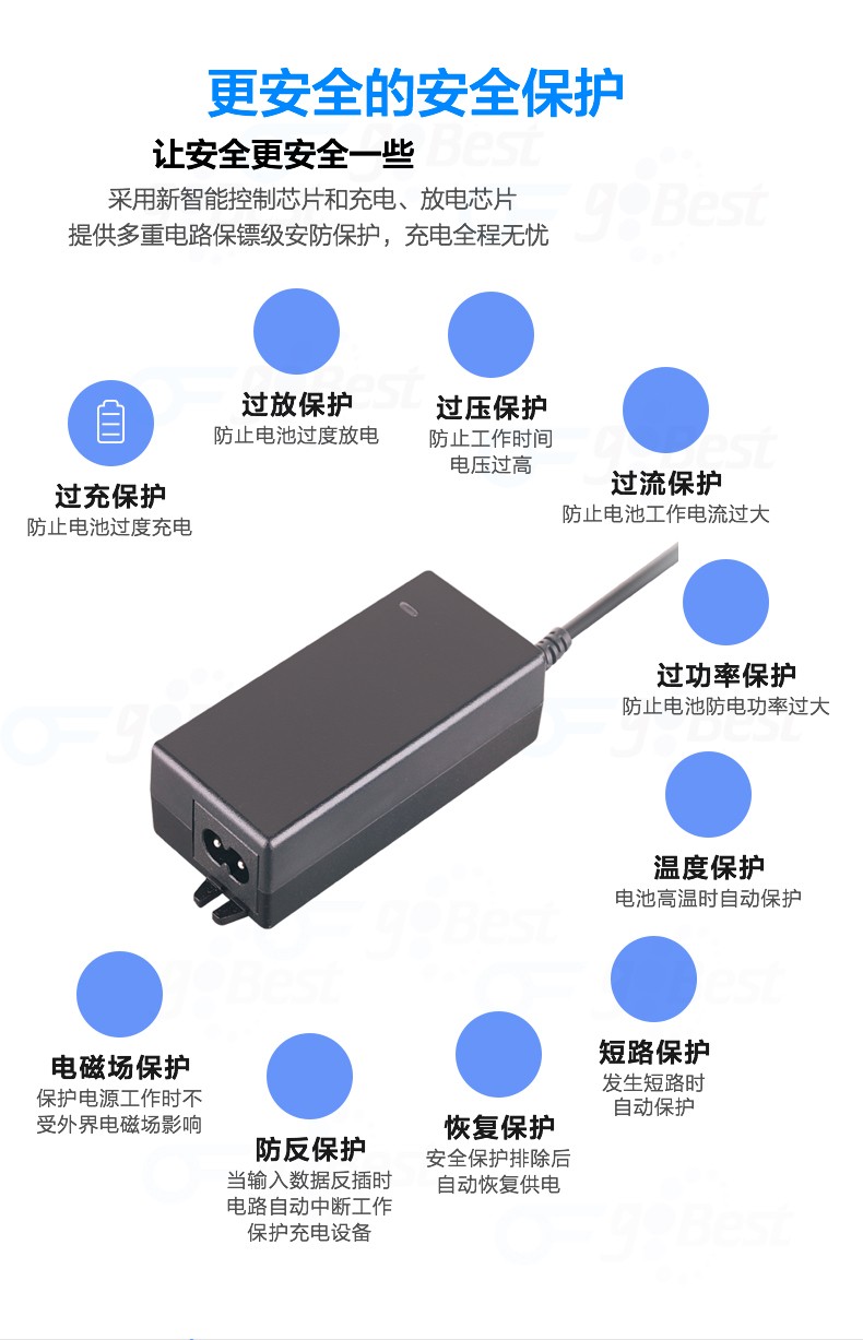 • 采用前沿IC控制方案和先進(jìn)的制造工藝,高精度,低噪音;過壓,過流,過充,短路等多重保護(hù)。
