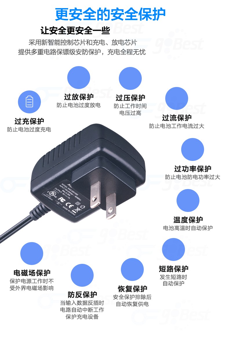 • 采用前沿IC控制方案和先進(jìn)的制造工藝,高精度,低噪音;過壓,過流,過充,短路等多重保護(hù)。