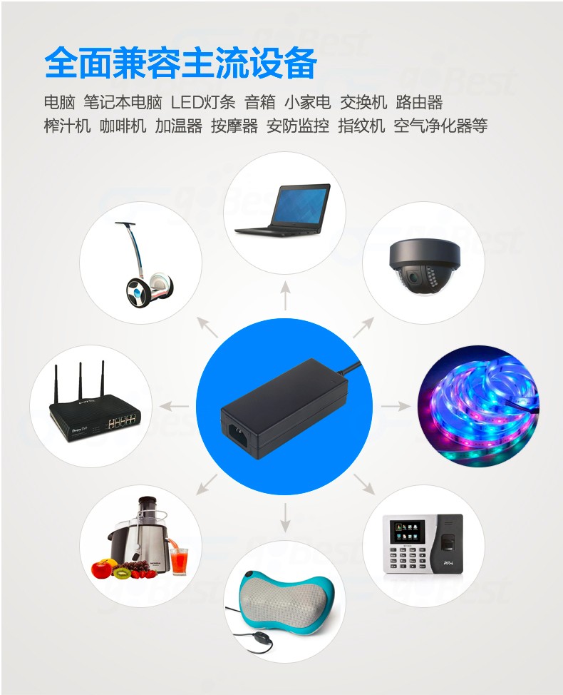 • 采用前沿IC控制方案和先進(jìn)的制造工藝,高精度,低噪音;過壓,過流,過充,短路等多重保護(hù)。