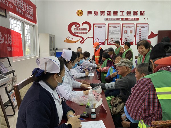 11月20日上午,青陽縣總工會攜手青陽縣人民醫院,在青陽縣芙蓉湖公園工會驛站共同舉辦了一場以“溫‘新’義診進驛站 暖‘新’服務送關懷”為主題的關愛新就業形態勞動者義診活動。此次活動旨在加強戶外勞動者的職業健康意識,并充分發揮工會驛站作為服務戶外勞動者的前沿陣地作用。