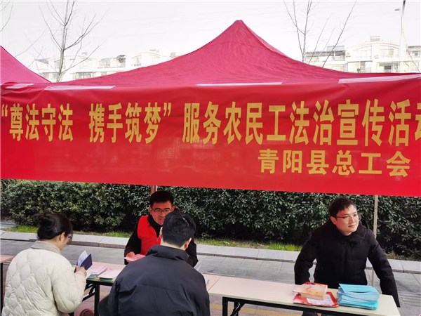 為健全普法責(zé)任機(jī)制,提升工會(huì)法治化水平與職工法治意識(shí),近日,青陽(yáng)縣總工會(huì)積極行動(dòng),在青陽(yáng)大潤(rùn)發(fā)廣場(chǎng)開(kāi)展 “尊法守法 攜手筑夢(mèng)” 服務(wù)農(nóng)民工法治宣傳活動(dòng)。
