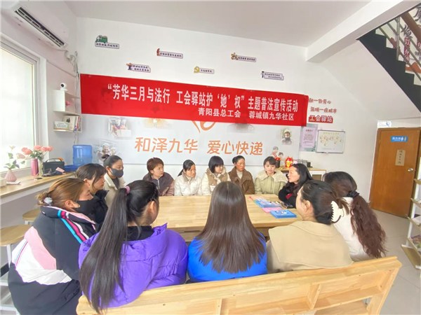 為慶祝第115個(gè)“三八”國際婦女節(jié),進(jìn)一步深化女職工法治宣傳教育,切實(shí)維護(hù)女職工合法權(quán)益,3月7日上午,青陽縣總工會在九華社區(qū)工會驛站舉辦“芳華三月與法行 工會驛站護(hù)‘她’權(quán)”主題普法宣傳活動,為女職工送上節(jié)日“法治禮包”,營造關(guān)愛女性、尊重女性的良好社會氛圍。