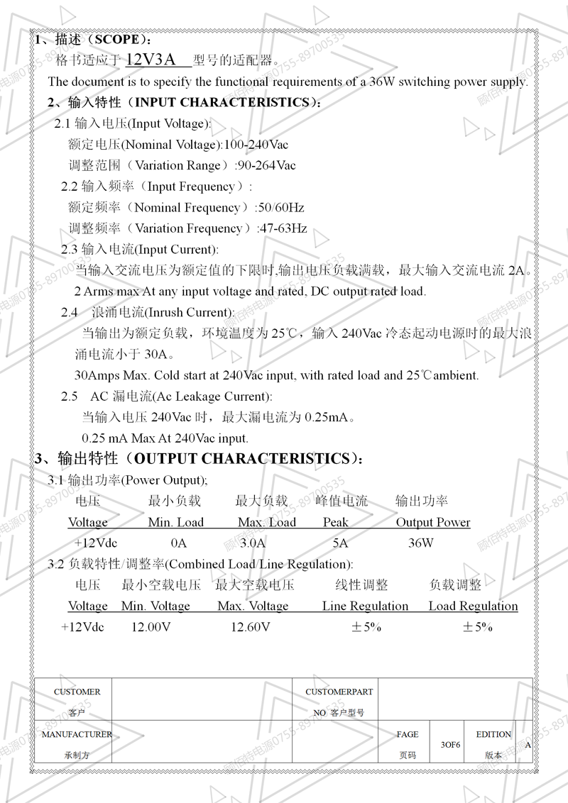 當(dāng)前位置: 電源適配器廠家 > 技術(shù)資料 > 電源規(guī)格書(shū)