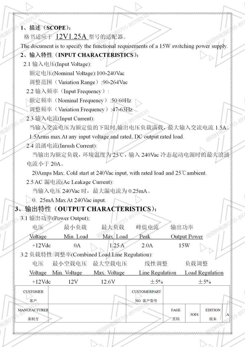 當前位置: 電源適配器廠家 > 技術資料 > 電源規格書